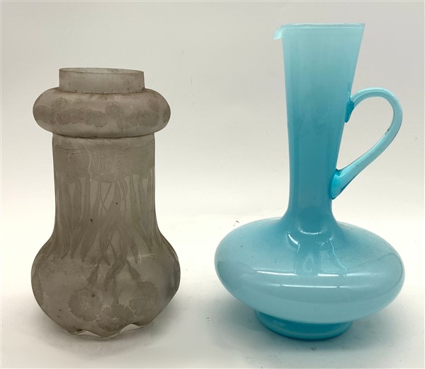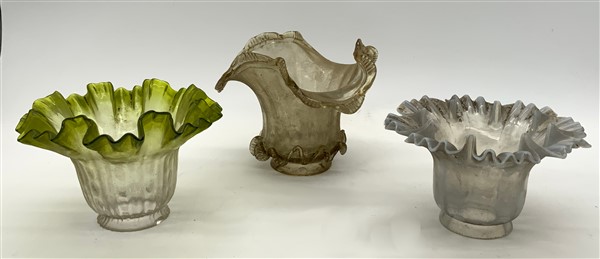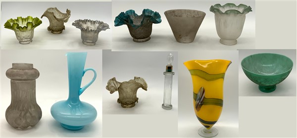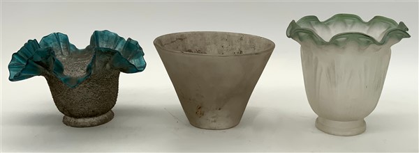 Tre cartoni contenenti numerosi oggetti in vetro tra cui diversi paralumi e vasi (difetti)