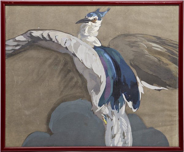 Ignoto, tempera su carta raffigurante volatile cm 45x55. In cornice (lievi dife