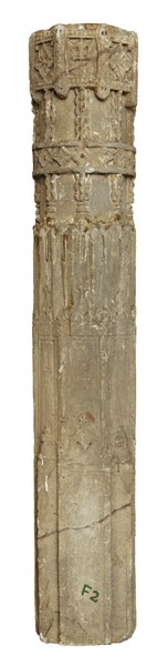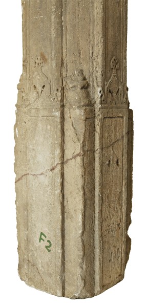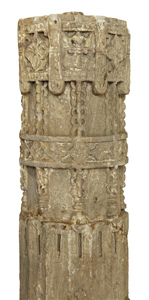 Frammento di antica colonna in pietra scolpita (h cm 144) (difetti e restauri)