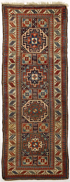 Tappeto passatoia Kazak, Caucaso, fine secolo XIX (cm 301x101) (difetti e vecchi restauri)