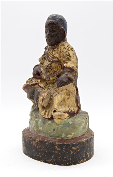 Lotto composto da un guerriero e un dignitario assiso in legno intagliato, dipi