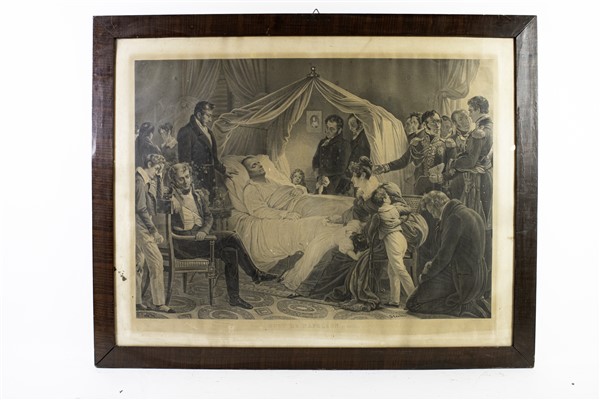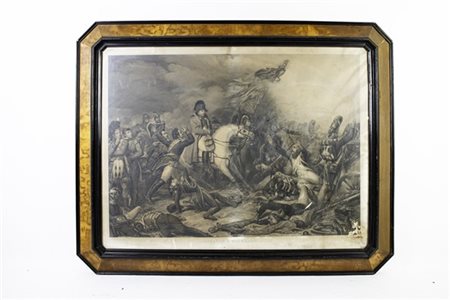 Lotto di due grandi incisioni a soggetto napoleonico, secolo XIX (cm 85x110 e 80x105), in cornici (difetti)