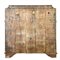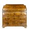 Ribalta lastronata in noce e filettata in legni vari, fronte a tre cassetti e c