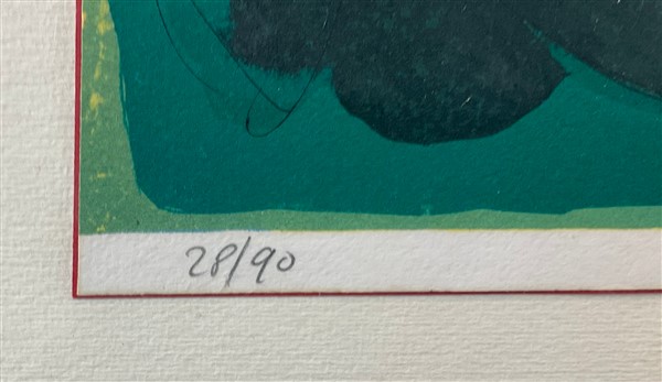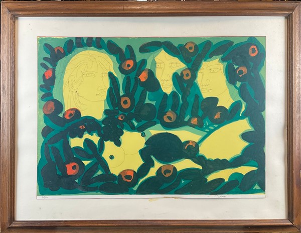 "Senza titolo" litografia a colori raffigurante volti femminili e frutti (cm 50x70) firmata e numerata 28/90 in basso a matita
