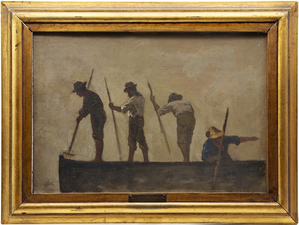 Luigi Steffani "Alla fiocina" olio su cartone telato (cm 30x43) monogrammato in