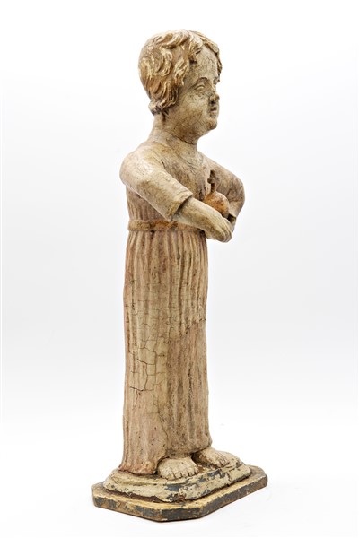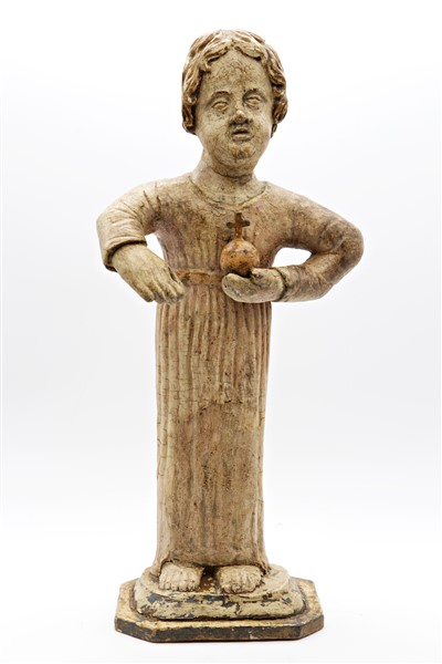 Scultore del secolo XVIII, Salvator Mundi, legno intagliato e laccato (h cm 55)