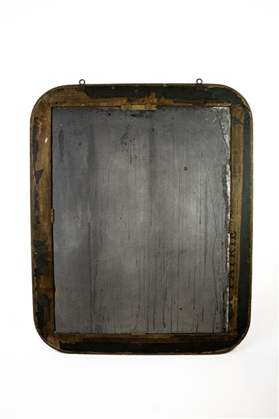 Specchiera con cornice a vassoio in legno e stucco dorato con bordura perlinata. Secolo XIX (cm 115x92) (difetti)