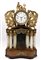 Pendola da appoggio con cassa a portico in legni vari e alabastro decorata da f
