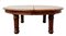 Tavolo allungabile in rovere con piano circolare filettato, gambe scanalate. In