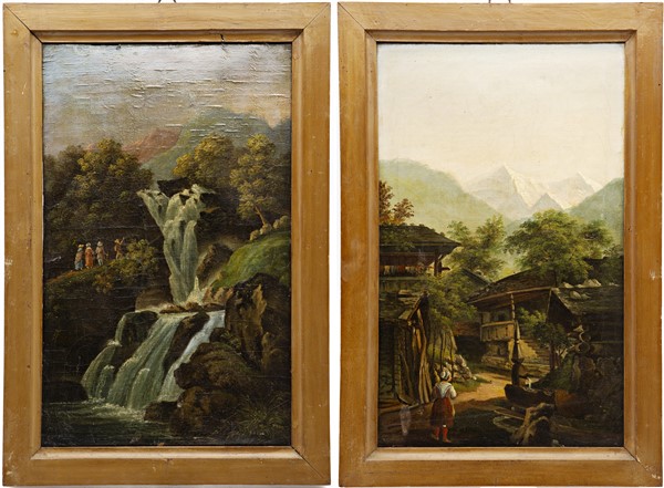 Ignoto del secolo XIX, Coppia di dipinti ad olio su tela raffiguranti "Paesaggi