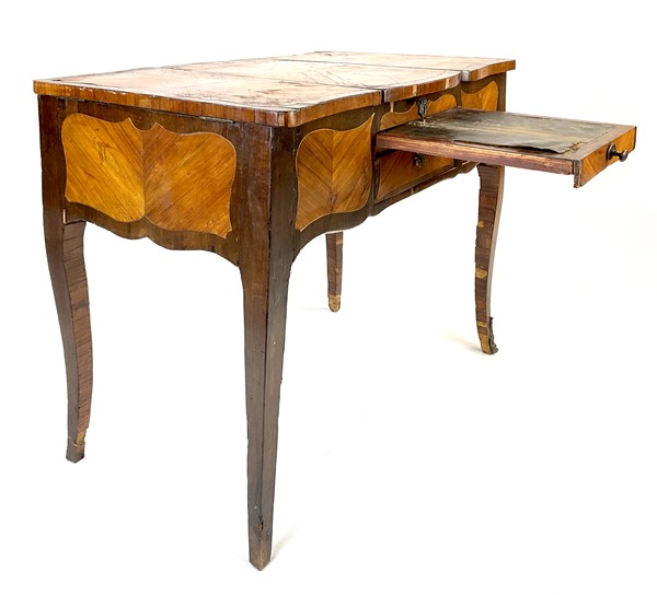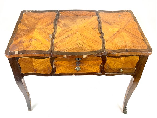 Toilette lastronata e filettata in palissandro e bois de rose con piano tripart