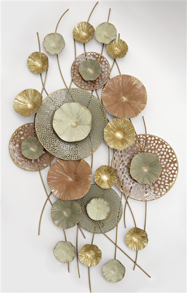 Pannello da parete in rame smaltato e metallo a forma di fiori stilizzati e tra