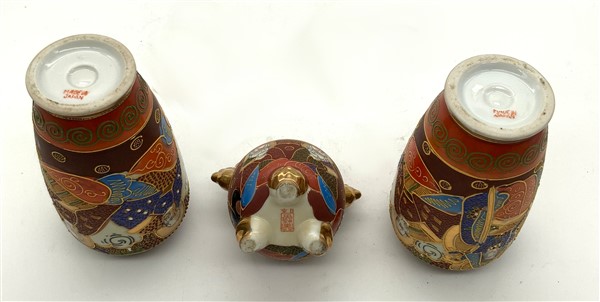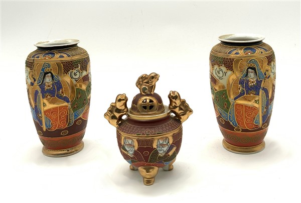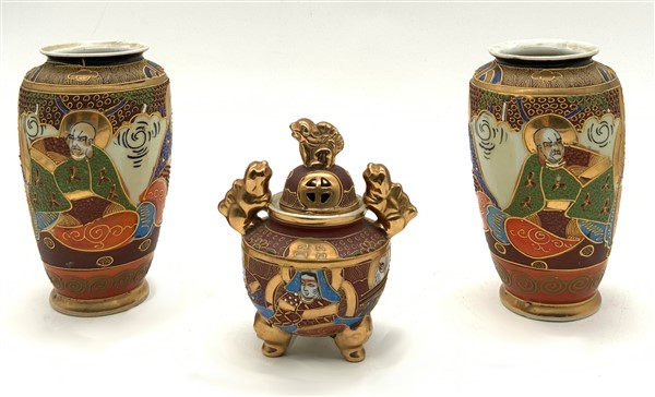 Lot 1228 | Lotto composto da coppia di vasetti in porcellana Satsuma ed un bruciaprofumi c