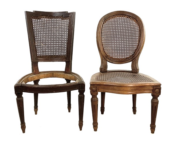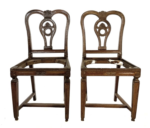 Lotto composto da quattro diverse sedie in legni vari, secolo XVIII. Unite ad u