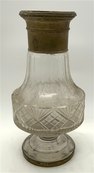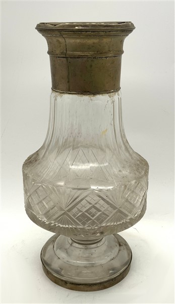 Lot 1235 | Vaso in vetro molato con collo e piede bordati in argento (h cm 33) (difetti)
