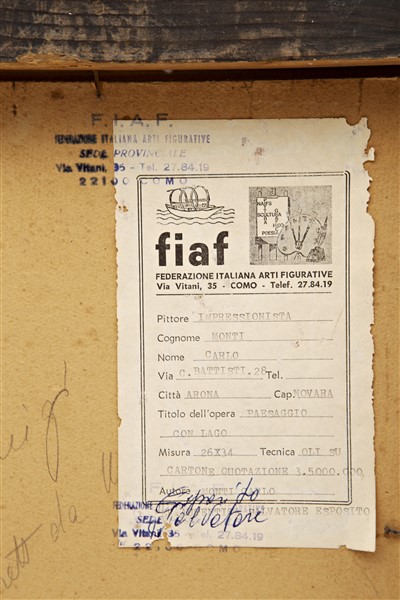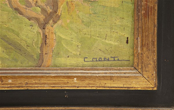 Cesare Monti Coppia di dipinti ad olio su cartone raffiguranti Paesaggi (cm 35x2