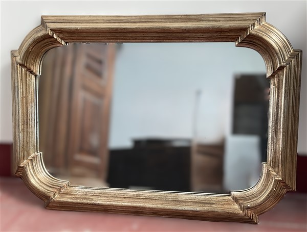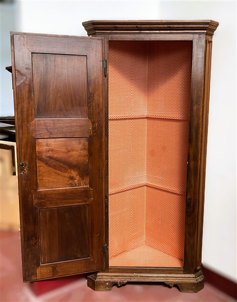 Lotto composto da un'angoliera ad un'anta pannellata in legno e compensato (cm 55x172x55) ed una specchiera sagomata in legno dorato (cm 61x86,5) (difetti)