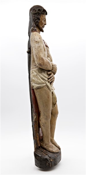 Scultore del secolo XVIII, Cristo alla colonna, legno intagliato e laccato in policromia (h cm 63) (difetti, mancanze e restauri)