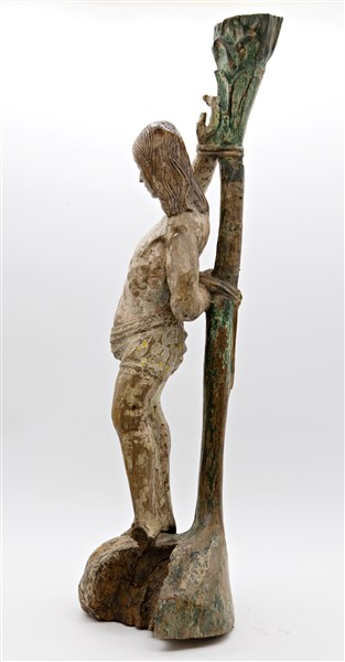 Scultore del secolo XVII, San Sebastiano, legno intagliato e laccato (h cm 73) (difetti e mancanze)