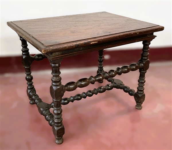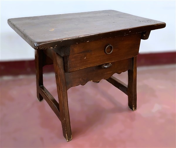 Lotto composto da un credenzino ad un'anta, un tavolino con gambe e traverse tornite e un tavolino con un cassetto in legni vari. (h max cm 72) (difetti)
