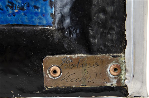 Ignoto "La Pace" 1993, metallo sbalzato e smaltato (cm 71x65) firmato Paolino Vecchi, titolato e datatao a punta in basso