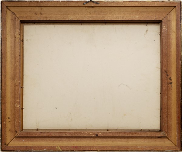 Ignoto, secolo XIX, Paesaggio con castello e figure, tempera su carta applicata su cartone (cm 45x57), in cornice