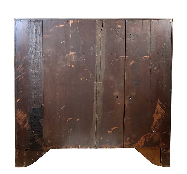 Ribalta in mogano con fronte a quattro cassetti di altezze a scalare, calatoia