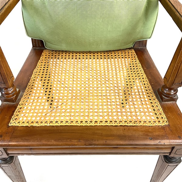 Lotto composto da un'antica poltrona in noce con gambe a obelisco rovesciato, u