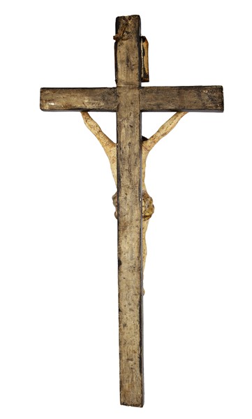 Arte del secolo XIX. Lotto composto da due Crocifissi in legno e cartapesta dip
