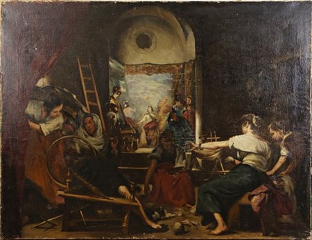 Ignoto, da Diego Velázquez "Le filatrici" olio su tela (cm 79x104) (difetti e