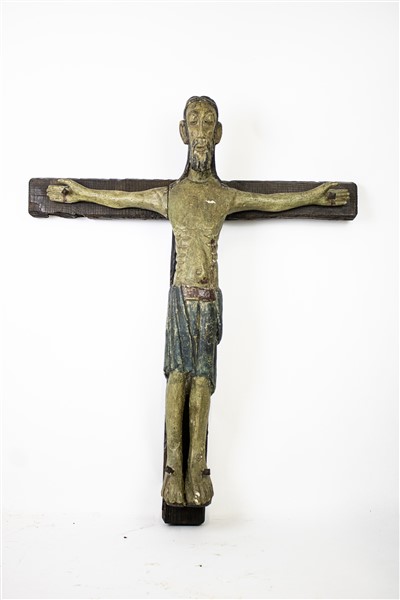 Arte spagnola del secolo XVII. Cristo Crocefisso in legno intagliato e dipinto,