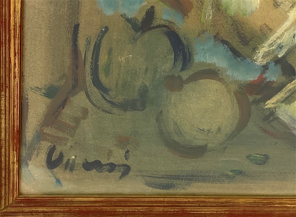 Lot 1385 | Firma indecifrata "Vaso con frutta" tecnica mista su carta (cm 43x57,5) firmato