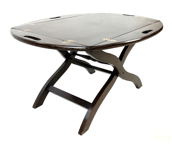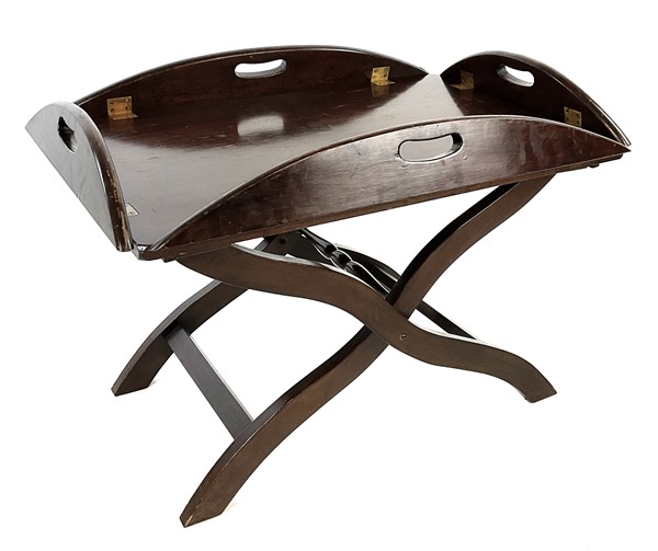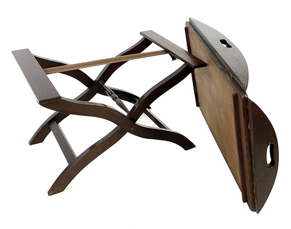 Tavolino da salotto pieghevole in stile navy in mogano, piano a vassoio con ban