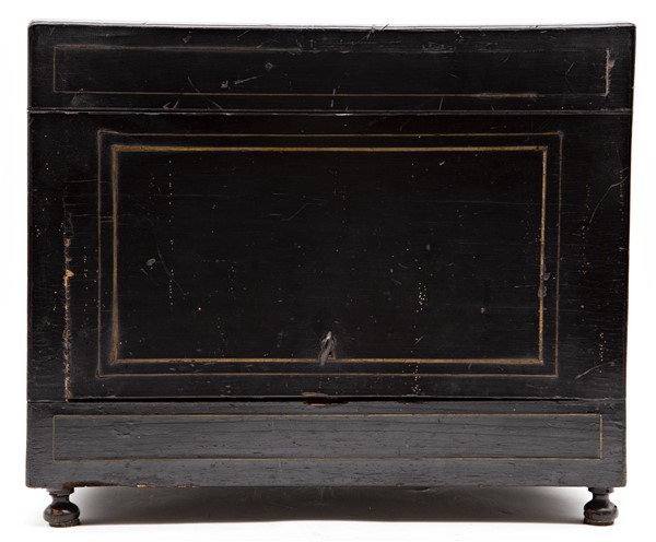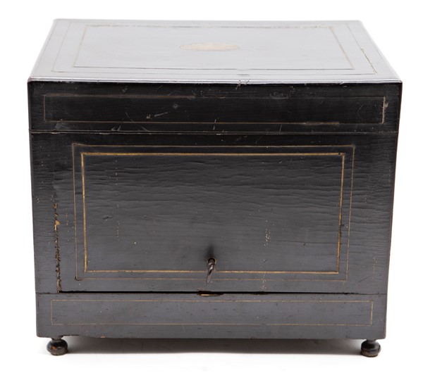Porta liquori del tipo "cave a liqueur" in legno ebanizzato con profili in otto