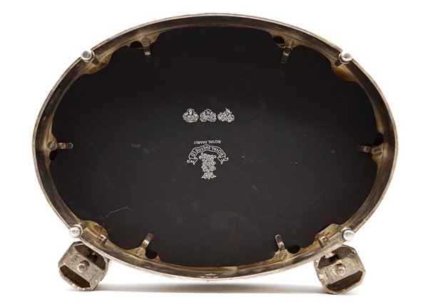 Specchiera da toilette in old sheffield con base ovale specchiata, sostegni sca