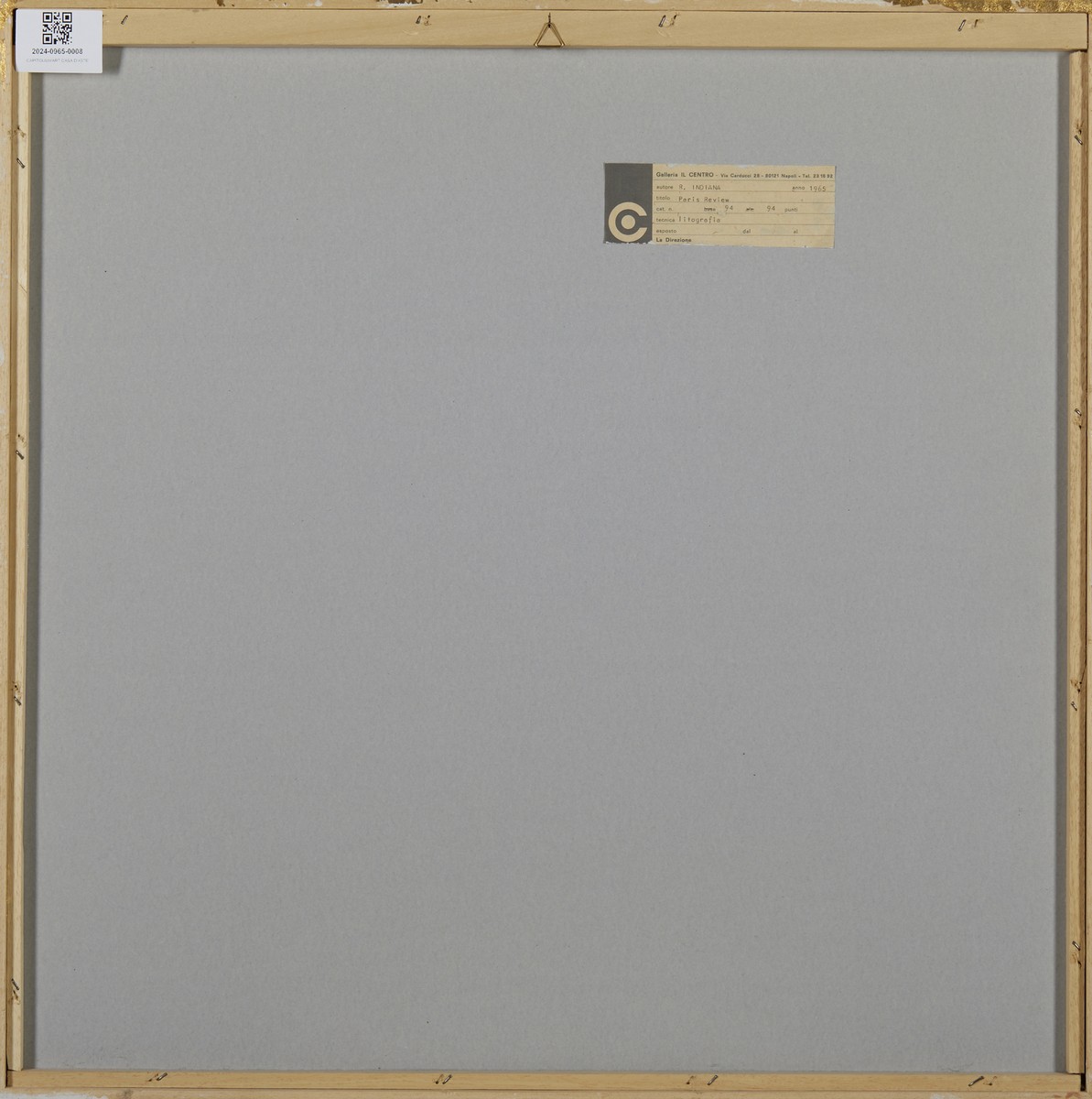 INDIANA ROBERT (1928 - 2018) PARIS REVIEW,1965. Serigrafia. Cm 63,50 x 66,00. firma, tiratura e data a matita, es. 8/150