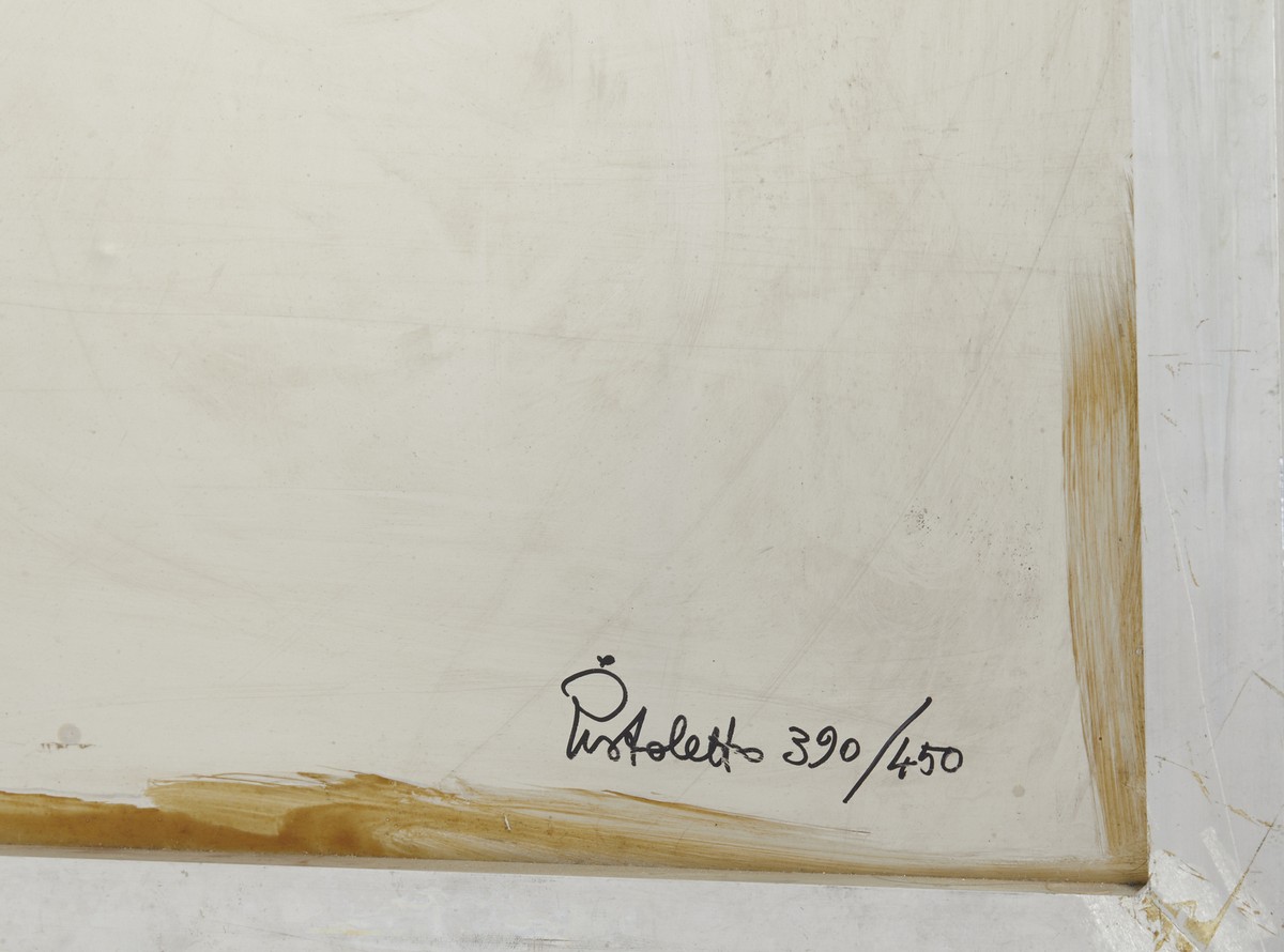 PISTOLETTO MICHELANGELO (n. 1933) GIRASOLI, 1973. serigrafia su acciaio inox lucidato a specchio. Cm 70,00 x 100,00. sul retro: firma e tiratura a pennarello, es. 390/450