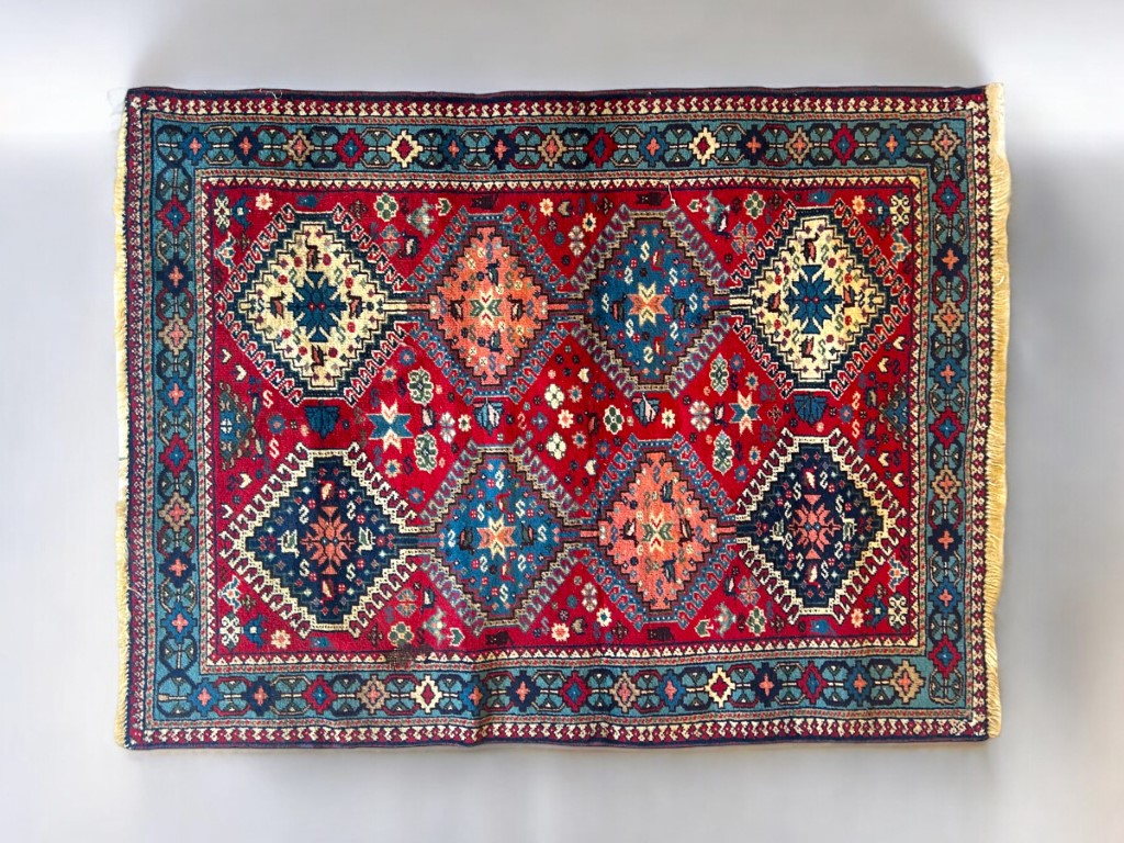 Lot 69 | Tappeto con motivi geometrici su fondo rosso