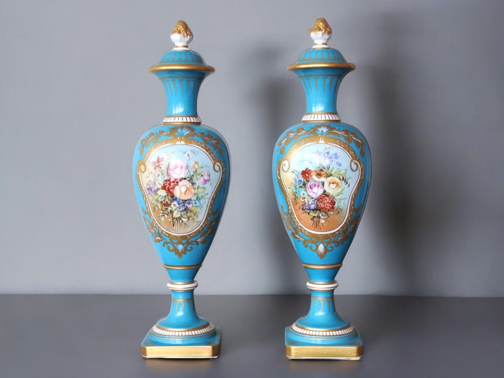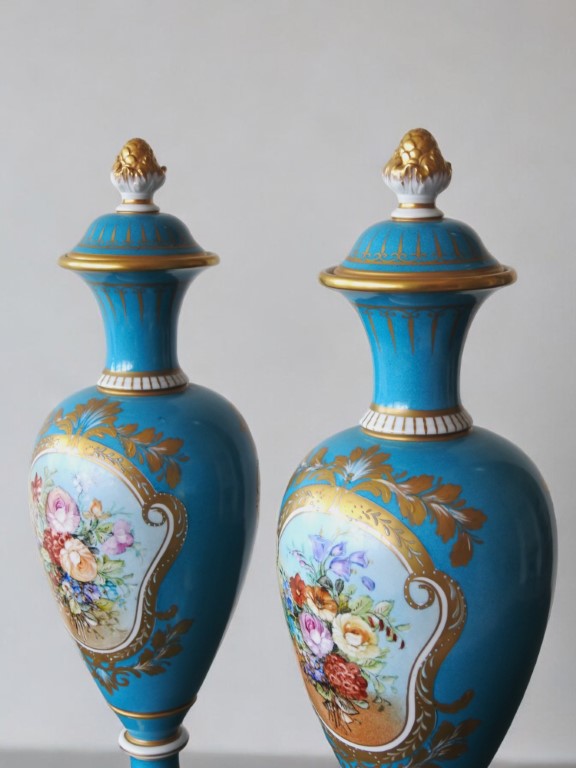 Due grandi potiches in porcellana policroma, Sèvres