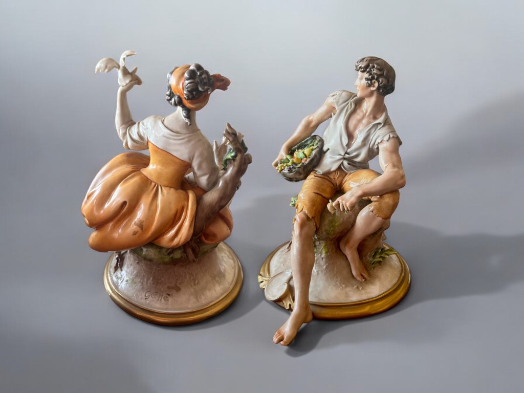 Coppia di statuette tipo Capodimonte in porcellana policroma
