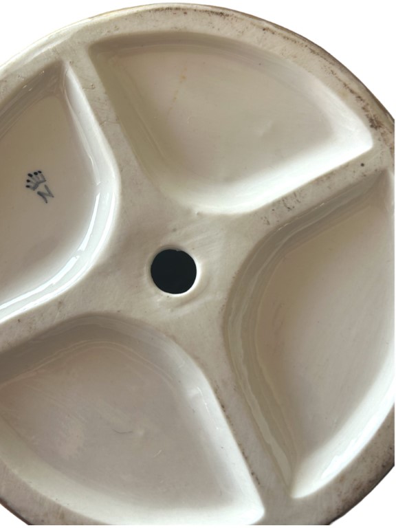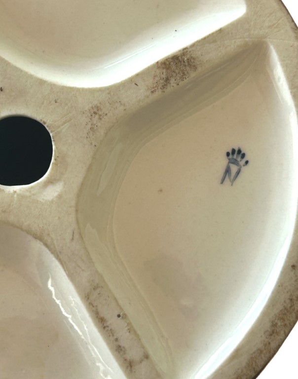 raffiguranti un giovane con cesto di frutta ed una ragazza con un volatile, entrambi seduti su un masso