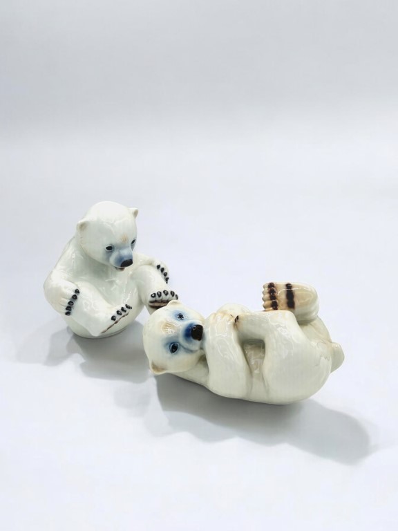 Set di due sculture di orso in porcellana Copenhagen Bing & Grondahl attribuite a Merete Agergaard