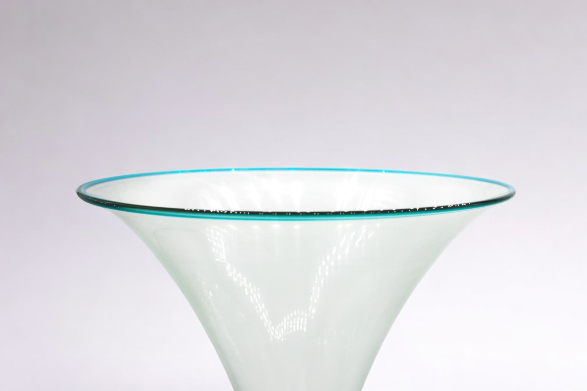 Coppia di vasi a tromba in vetro di Murano verde acqua
