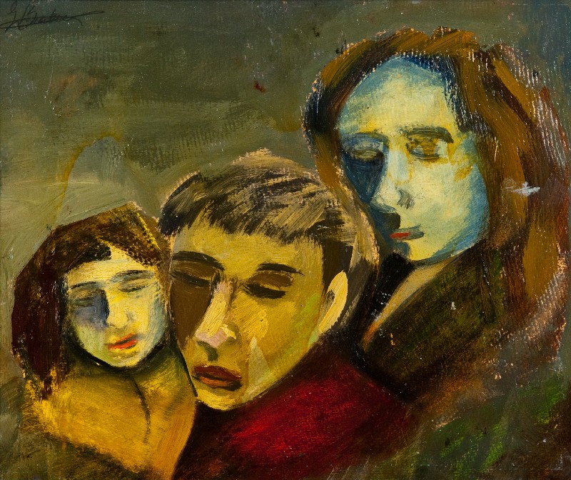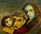 Anonimo FIGURE Olio su cartone, cm. 33x39,5 Firma illeggibile in alto a...