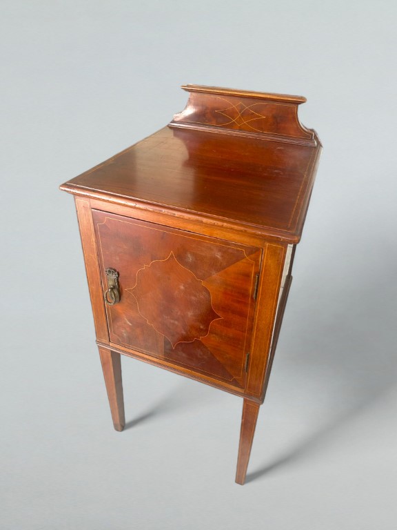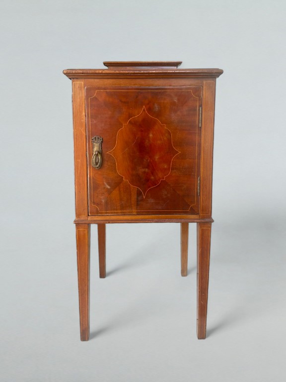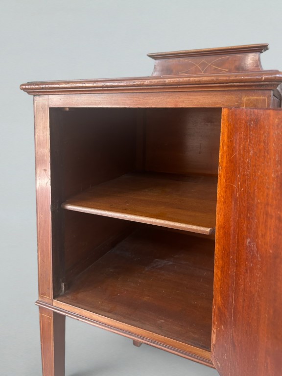 Piano con piccola alzata, uno sportello, gambe troncopiramidali