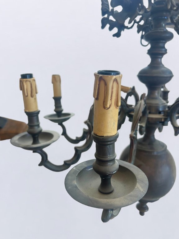 Lampadario in bronzo a otto luci in stile olandese di gusto seicentesco
