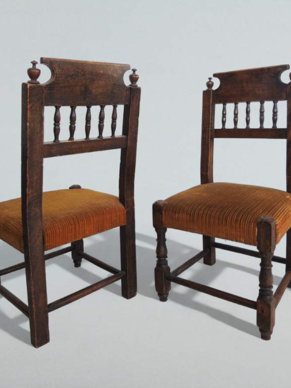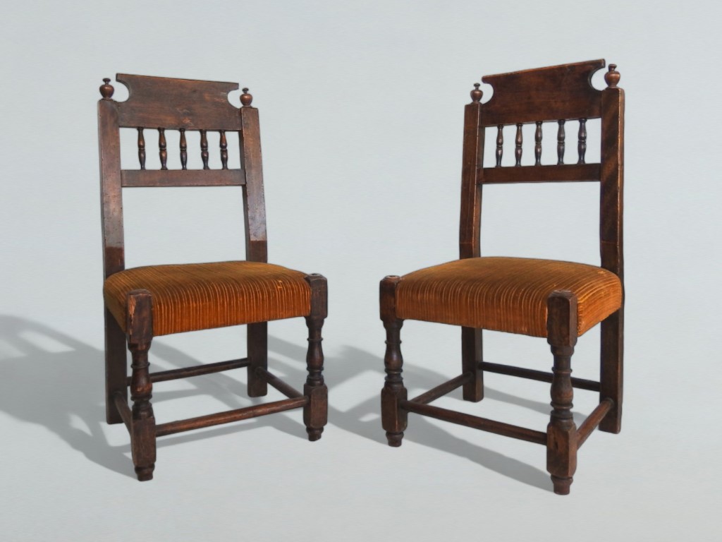 Due sedie da balia in stile Seicento in legno tinto a noce