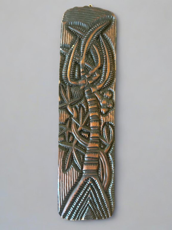 Rilievo in legno scolpito e brunito raffigurante una palma