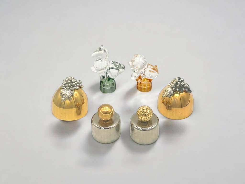 Lotto di tappi composto da: due tappi in vetro e quattro in metallo