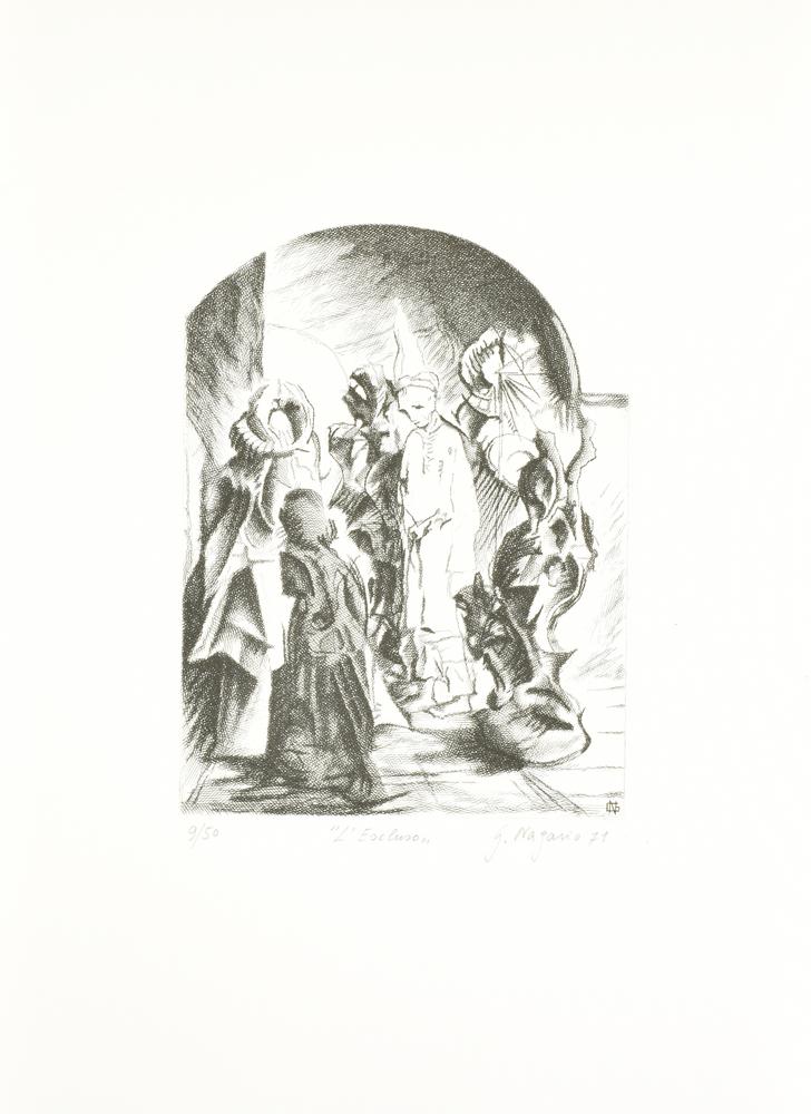 Gaudenzio Nazario L'ESCLUSO incisione su carta, battuta cm 24,5x18,5, su...
